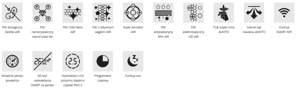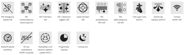 - usuwa cząsteczki PM 2,5 w 99,9%