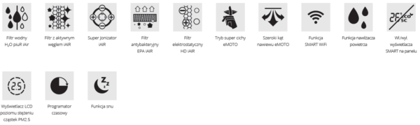 Poprzez wytworzenie ujemnych jonów w ilości do 10 mln/cm³ filtr eliminuje z powietrza wirusy, bakterie, roztocza oraz alergeny. Nieprzyjemne zapachy zostają wyeliminowane praktycznie natychmiast po kontakcie jonizatora z zanieczyszczonym powietrzem.