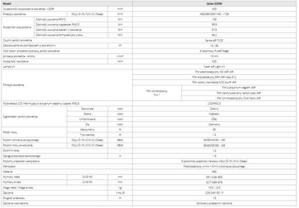 Oczyszczacz powietrza z nawilżaczem Rotenso Qube to urządzenie dedykowane dla pomieszczeń do 85 m². Podczas 1h pracy oczyszczacz skutecznie filtruje aż 420m³ powietrza i nawilża z wydajnością 320 ml/h. Wyróżnia go modny design i przyjazne dla użytkownika funkcje, w tym obsługa za pomocą aplikacji mobilnej.